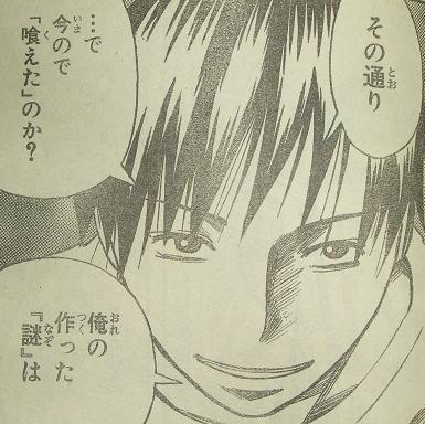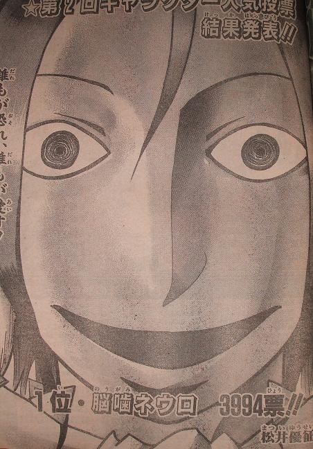 この前の土曜の部活で両腕が大蛇丸のごとく焼けてしまいました。 おのれぇ…三代目ェッ!!! 腕なんてどうでもいいから顔が焼けてくれ。 さて、この間のテストは321人中225番目というアホな結果に終わりました。 んなアホな。 大して苦労もせず、だったので当たり前の結果なのか。 で、今日の朝委員長がいきなり話しかけてきて、 委員長:「俺昨日2時間かけてこの着うた取ったさ~」 俺:「は2時間!?何やってんのさお前」 委員長:「とにかく聴いてみ」 委員長は小梅太夫の存在感のごとく薄い携帯を俺の耳に近づけた。 すると、 携帯:「届か~な~い♪届か~な~い♪この思いを~♪」 俺:「遊戯王!?」 委員長:「良いべ!!」 それはまさしく、遊戯王の初代オープニングだった。 タイトルは分からなかったが、「VOICE」という曲らしい。 …というわけで、俺は「VOICE」のCDを探すことにします。 歌ってるのは誰なんだ? ★遅れながら先週のネウロ 1週前、見事なブリッジで弥子の指差しを避けた大菅依(おおすが より)。 避ければいいってもんじゃないよと、全読者の突っ込みが聞こえてきそうだ。 弥子も負けじと指を下に向けるが、 ぴょん そのまま凄いジャンプ力で竹林に逃走。 ブリッジの体制のままカサカサと逃げてくれたら面白かったろうに。 追うネウロ。 ネウロが追いつき、今のジャンプ力は電子ドラッグによるものだと判明。 同時に、ネウロは大菅の竹を使った殺人トリックも見抜きます。 1コマで説明できるトリックとは…なんてちっぽけなんだ。 だが、それは大菅がネウロをおびき寄せるために「作った」謎だった。 「今ので「喰えた」のか?俺の作った「謎」は」 おちょくられ流石の魔人もキレ気味。 と、大菅は動物のような仮面を被り、 このような微妙な姿に変身。 がっかりだよ。 コイツが今まで散々引っ張ってきたサイの部下「蛭」の正体なのだから驚きである。 一方、1人取り残された弥子。 彼女に近づく一人の男。そいつはなんと、 竹田敬太郎 ※竹田敬太郎 この漫画の最初に出てきた犯人。 表向きは人の良さそうな刑事だが、本性は人のネガティブな表情を見ることに快感を覚える変態。 遺族の表情をネガティブに「加工」すべく、弥子の父親を始め多数の人間を殺してきた。 最終的にネウロに幻覚を見せられ廃人と化し、刑務所送りになった…筈だったのだが。 ビフォー ↓ アフター 最初の豹変犯人にしてはインパクトが強すぎた彼。 弥子はよほどのトラウマになっているせいか気絶。 「効果テキメンだったね 刑務所から盗んできたこの顔」 竹田の顔が変化し…その正体は…サイ!? 突如にして現れた竹田の正体はサイだったというオチ。 弥子に目をつけたサイ。なかなかに卑怯である。 お姫様だっこで弥子を誘拐。 …なんて奴だ。 こんな具合で先週のネウロ終了。うん。 そう言えばあったね!連続小説「おれん家れん家物語」 以前、物語の展開は頭の中にあると言いましたが、よくよくそれを整理してみれば、何の物語だよという話になりました訳で。 第2話「実際バンドの仕組みとかよく分かってないから展開が苦しい」 ~前回までのあらすじ~ 「音楽」が軽く見られている時代に、自分達の曲を心から聴いてもらうために頑張っているバンド「おれん家れん家(通称れんち)」。 彼らの背後で、ある勢力が動いていた…。 ある日、れんちは新曲のレコーディングの真っ最中。 馬場:「今日の中村の声はいつもに増して調子が良いな」 翔哉:「今回の曲は相当頑張ったんだよな俺!」 中村一:「コレもうアレだろ、CD買わずにはいられないだろう?」 翔哉:「DVDでもつけるか」 馬場:「あ!PVまだ撮ってないや」 中村一:「そういやそうだな…ていうかプロデューサーの村谷さんはどうしたんだ」 馬場:「最近あの人他のバンドにつきっきりだもん。俺らは放置されてるよ」 中村一:「何て奴だ」 大喜:「とりあえず今日はこれで終わりますか」 中村一:「そうだな…」 大喜:「皆さん先に上がってて下さいよ。後は俺とアレンジャー斉藤が片付けときますんで」 翔哉:「悪いな…じゃあお先に」 大喜はれんちのサポートドラマーである。 以前KONNOという正式ドラマーがいたが、音楽性の違いを理由に脱退。 その後、サポートドラマーとして加入したのが大喜だった。 彼は演奏の技術もさることながら、とても親切で、メンバー達からも信頼されている存在だった。 馬場:「腹減ったな~!じゃあまたいつものラーメン屋に行くか」 翔哉:「またラーメンかよ!ま、俺もラーメン大好きだけどな!」 中村一:「TAKUOはどうする?」 TAKUO:「…俺は…いい」 中村一:「そうか」 TAKUOはれんちのギタリストである。れんちの初期の名曲はたいてい彼の作曲によるものであり、その演奏テクは他のバンドからも一目置かれる存在なのだ。 だが、彼は極端に無口で、謎が多い。 TAKUOは1人、帰路に着こうとしていた。 TAKUO:「…!?あれは何者…?」 TAKUOの見る数十メートル先には、何やら不審な影が動いていたのだ! ー続くと思うー 前回のタイトルの